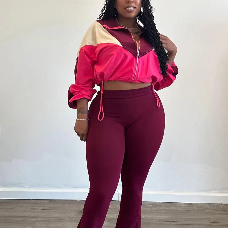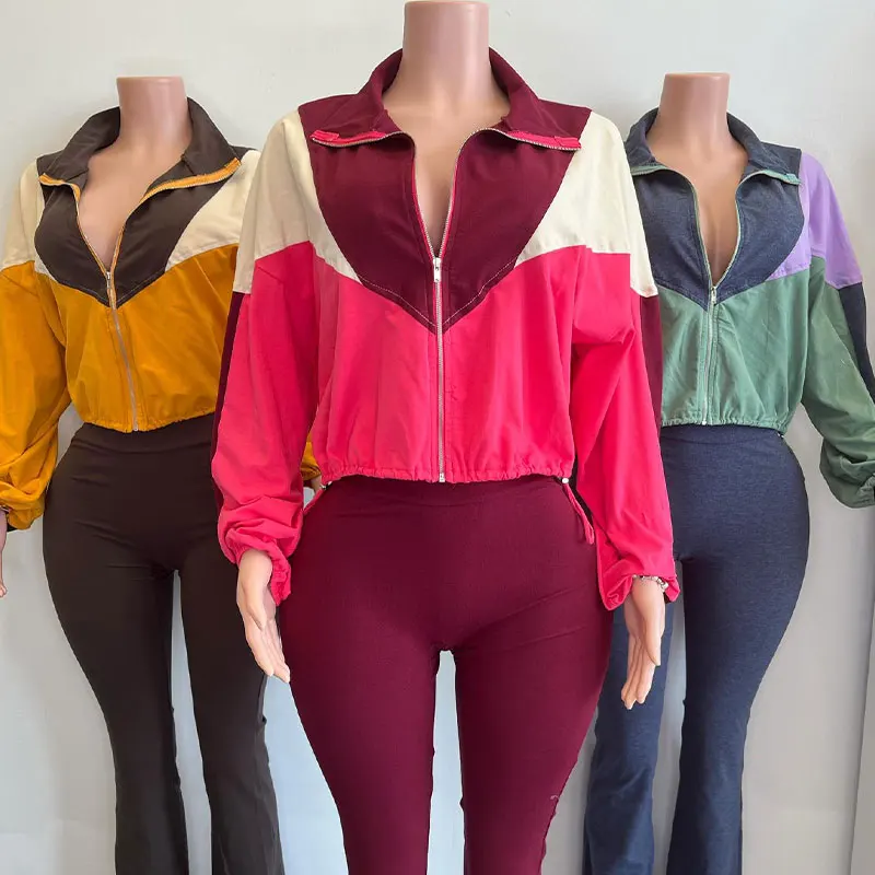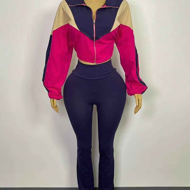 Huili Manufacturer High Quality Color Block Nylon Crop Top & Women's Leggings Sets 2025 Activewear Two Piece Set Women Clothing